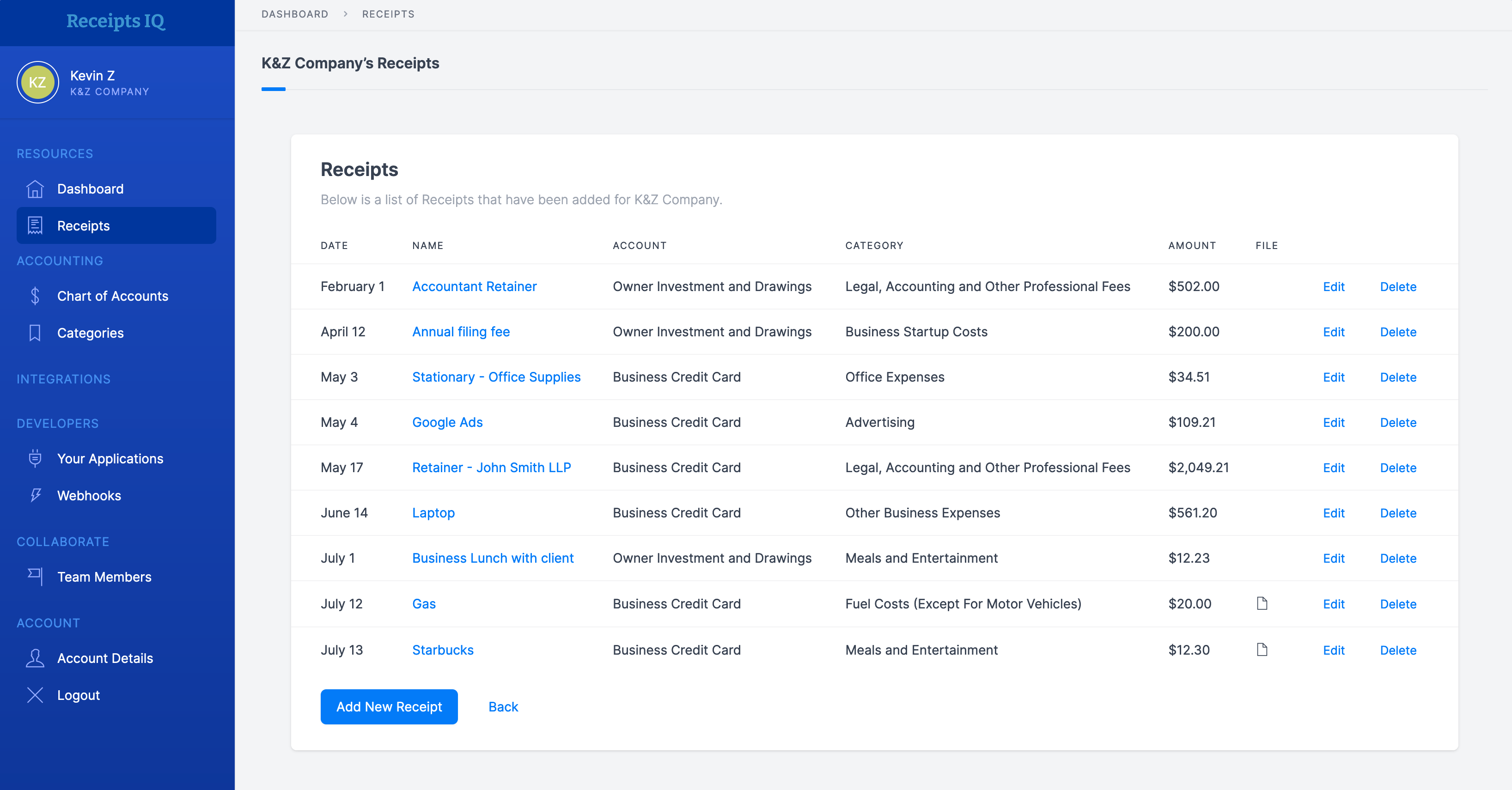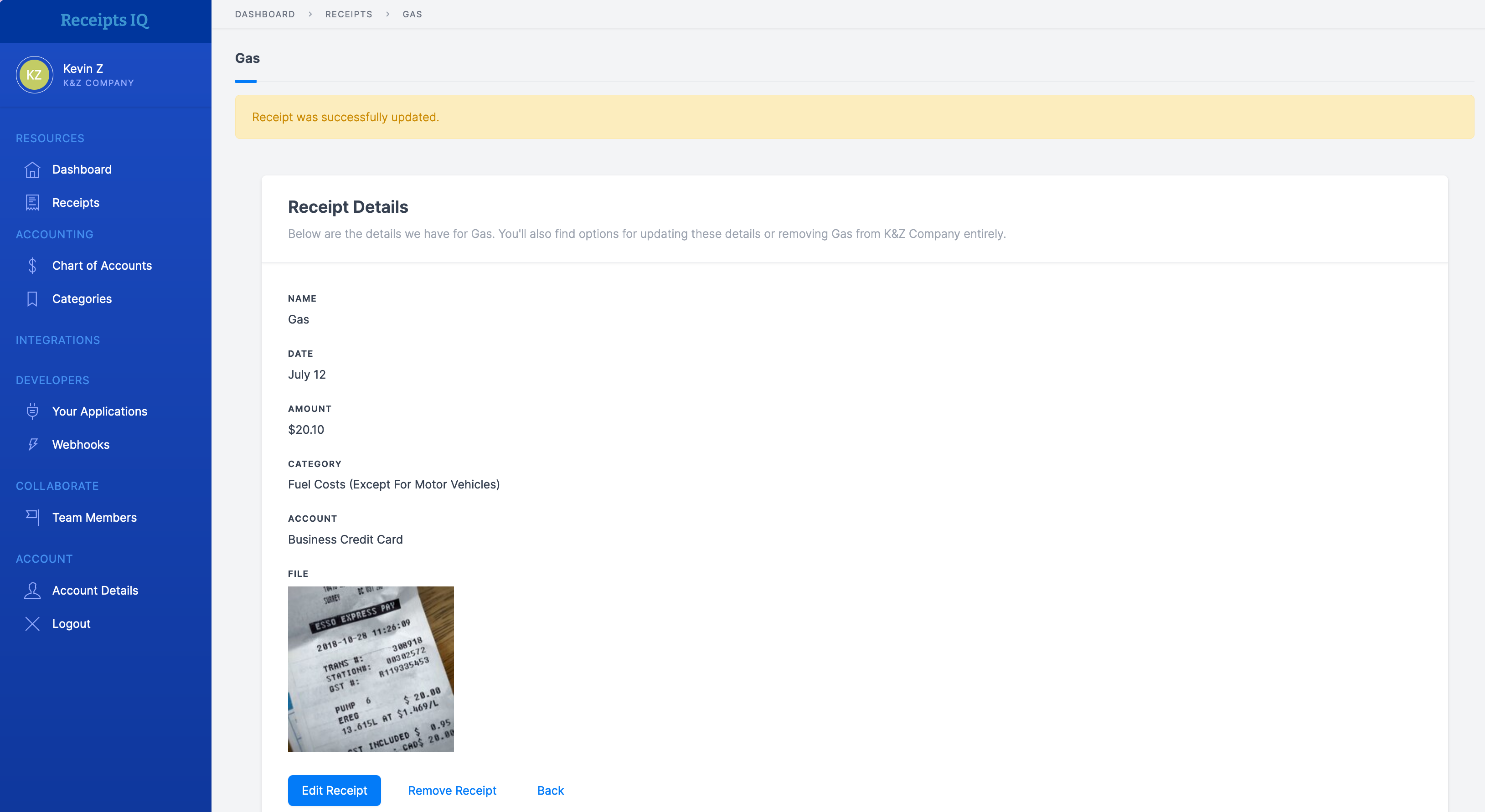 Take a photo of a receipt and let ReceiptsIQ do the rest.